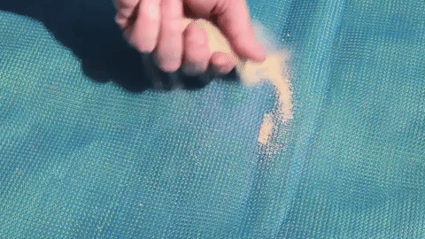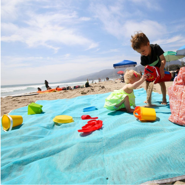The dual layer mesh technology features a top layer that allows particles to pass through it while the bottom later prevents sand beneath it from rising up.If sand does make its way on the mat . all you need to do is brush it off with your hand and it'll fall through the mat . as shown below.